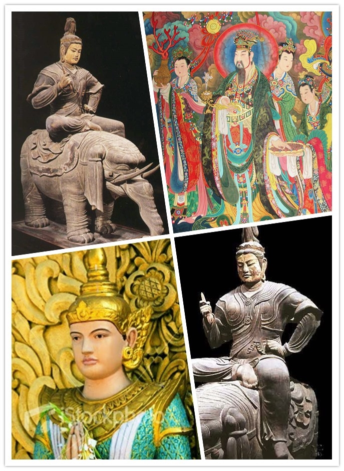 在中国寺庙里,帝释多为少年帝王像,且是男人女相。在水陆画中,帝释完全是一副中国后妃模样。于密教胎藏界外金刚院中,另有神王形等各种造像。