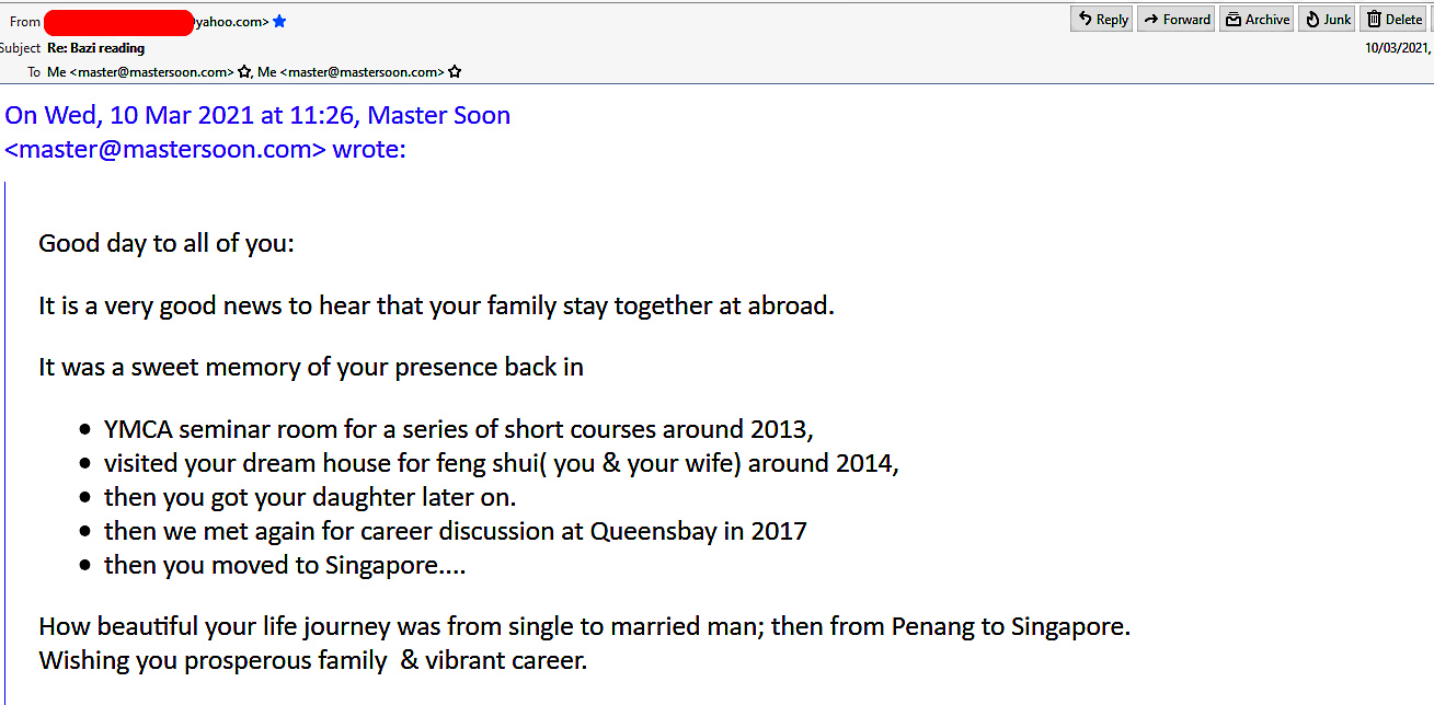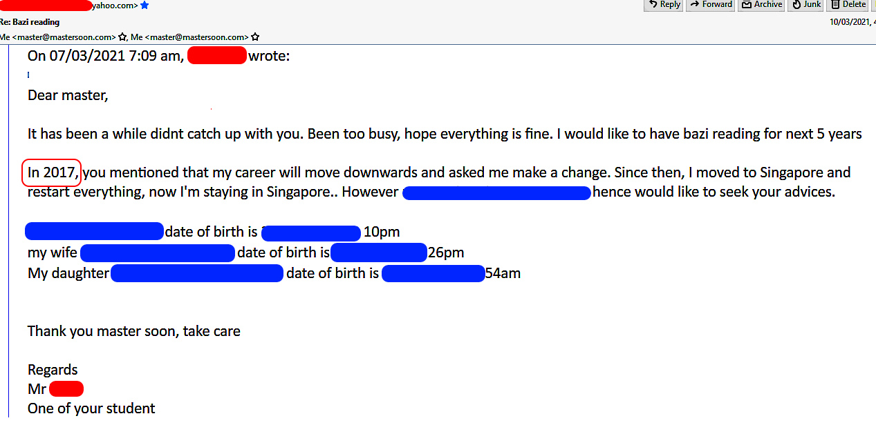- 仔细查看其人八字之后,建议他离开Penang 前往 Singapore 延续兴旺事业运!