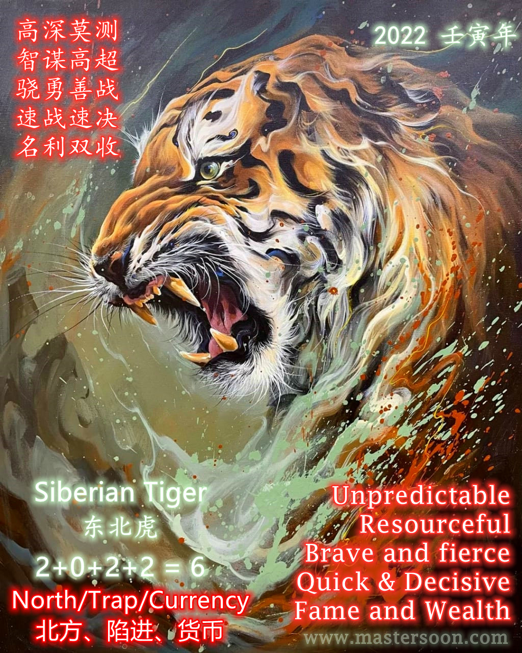 - 2+0+2+2 = Kan Trigram 坎, Tiger tooth 虎牙 of Ren Yin 壬寅!