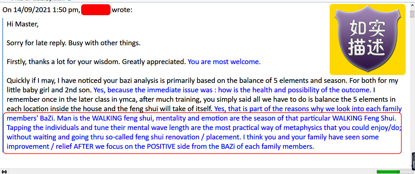 - Turning family members to be a WALKING feng shui 人就是走动的风水能量 for supporting each other !
