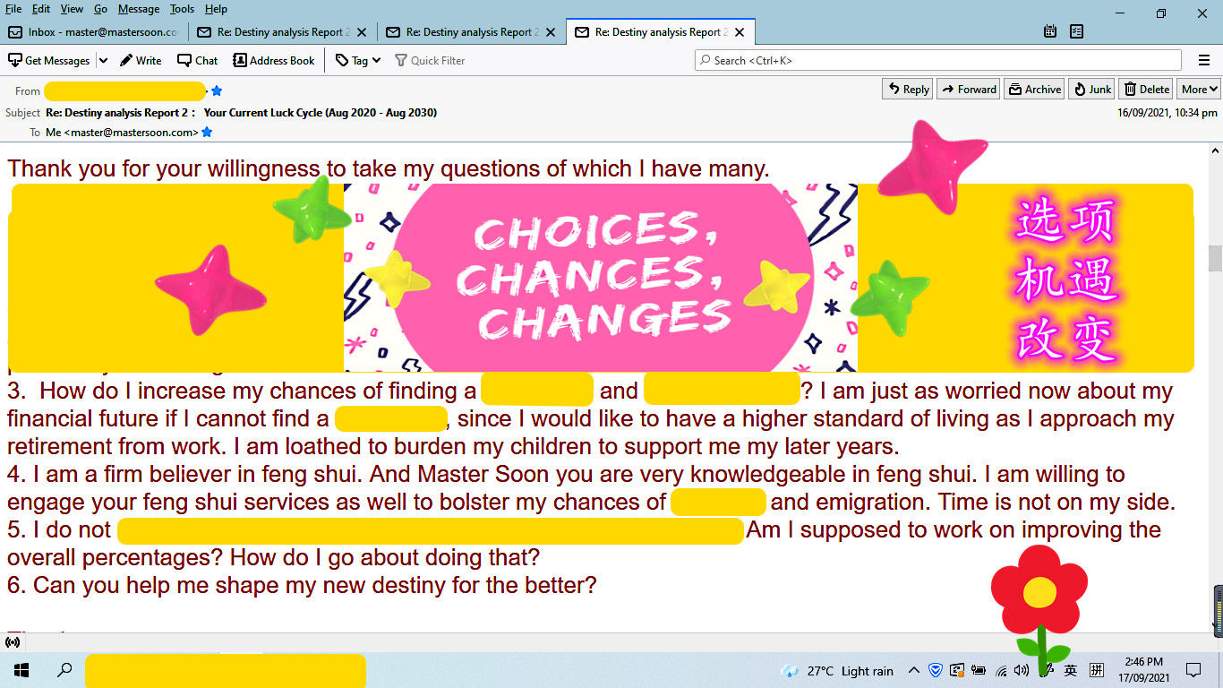 Know Your Probability Before Taking Drastic Action : Choices, Chances & Changes 《东方智慧》Oriental Wisdom – Master Soon WhatsApp : +60125603333 电邮 Email: master@mastersoon.com