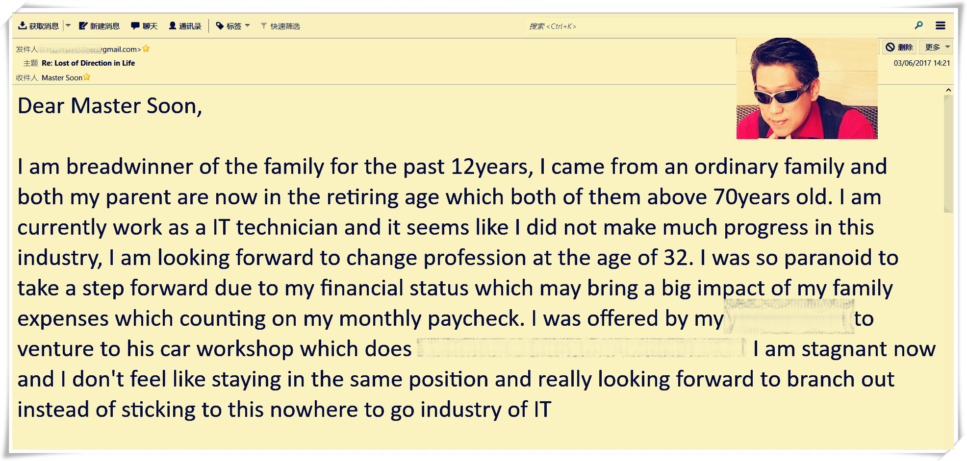 我现在停滞不前,我不想保持同样的位置,真的很期待出外寻求新突破,而不是在这没有曙光的IT行业耽误自己。