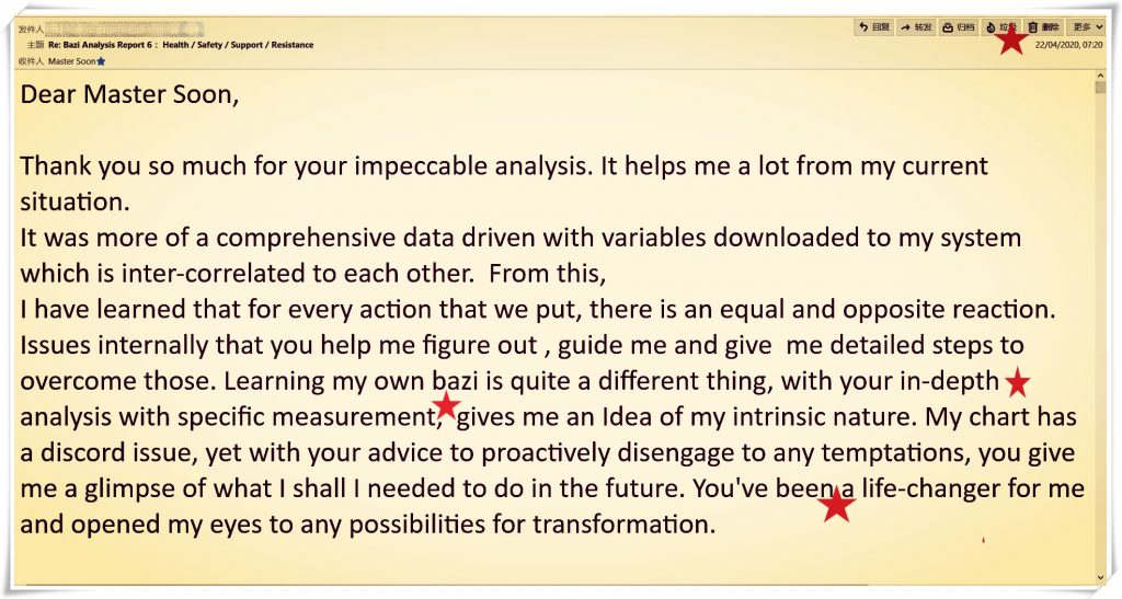 Master Soon has completed more than 20 years in researching the established and esoteric facets of Chinese metaphysics and mind strategies, plus unorthodox patterns of Destiny Reinventing method.