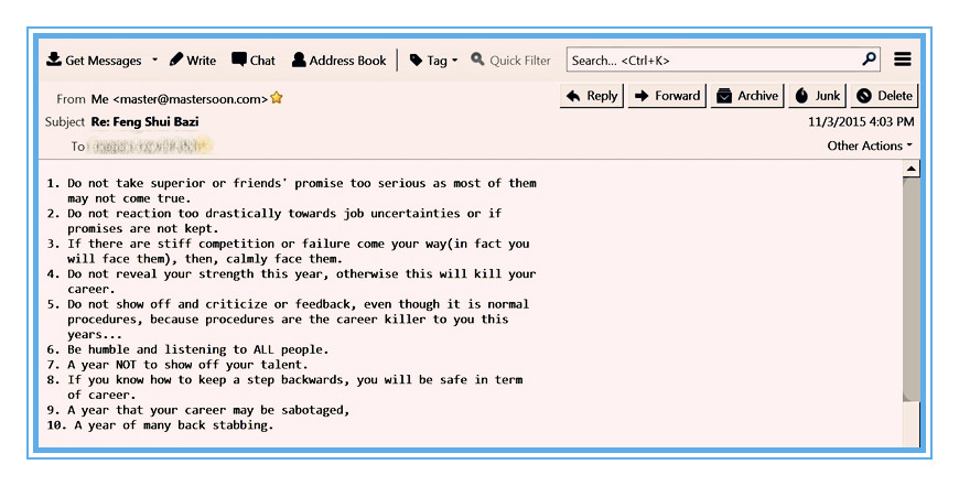 Master Soon has completed more than 20 years in researching the established and esoteric facets of Chinese metaphysics and mind strategies, plus unorthodox patterns of Destiny Reinventing method.