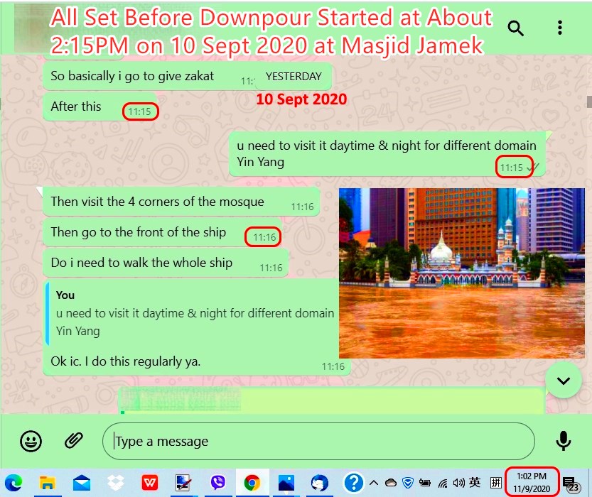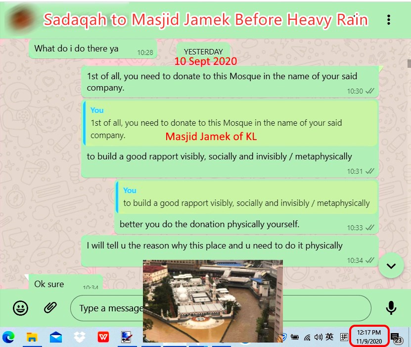 - We got everything ready to receive the downpour blessings on the morning of 10 Sept 2020 at Masjid Jamek (downpour started around 2:15pm)