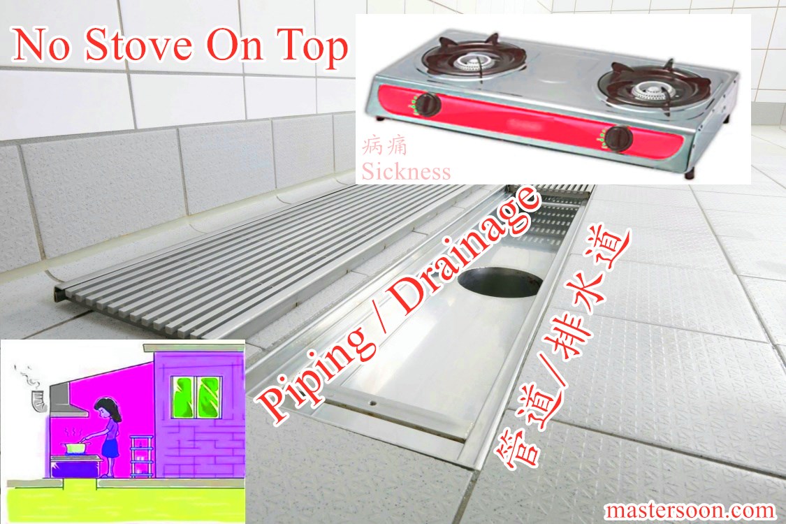 排水道 /气管道 之上方不可置放炉灶; 对健康不利….