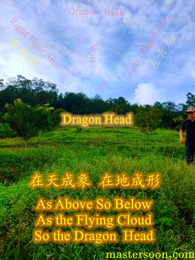 in this picture, the cloud formation(with the left dragon, right tiger, dragon vein, backbone & pointing to the Dragon Head(Stone) accurately & precisely right on the Dragon Spot.